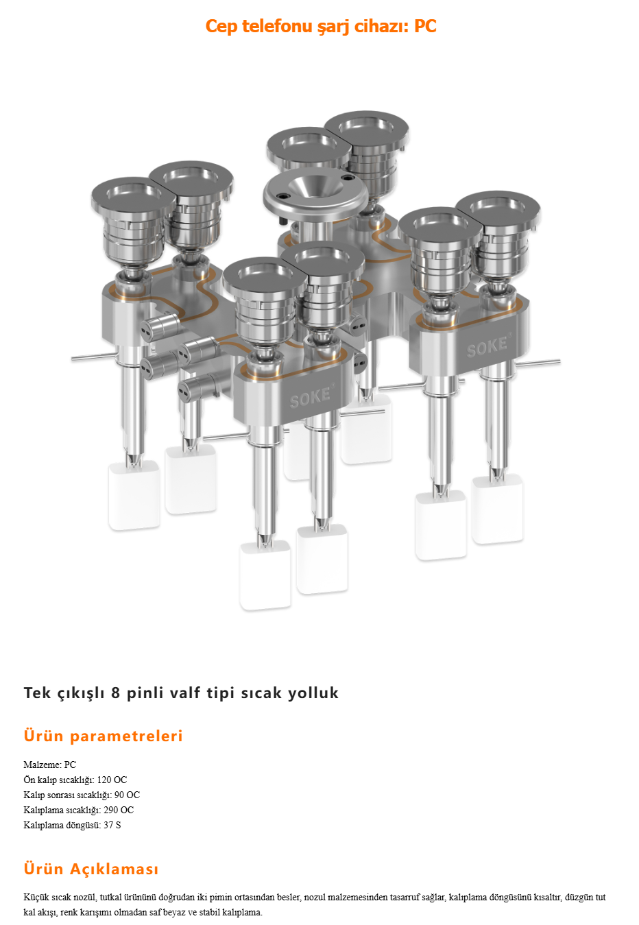 Soke Hot Runner, sıcak yolluk üretimine 2001 yılında başlamıştır. Çin'de sıcak yolluk üretimine giren ilk şirketlerden biridir. Yüksek erime sıcaklığı, yüksek katkı içeriği ve yüksek şeffaflık gerektiren mühendislik plastiklerinin enjeksiyonla kalıplanması alanında yaptığı çalışmalarla kendini geliştirmiş ve büyümesinin temellerini oluşturmuştur. Satış ve servis ağını güçlendirerek Çin de ve Çin dışında büyümesine devam etmektedir. Kurulduğu günden bugüne yaptığı Ar&ge faaliyetleriyle mühendislik plastiklerinin işlenmesinde çözümler geliştirmiştir. Kendine ait patentleri bulunmaktadır.