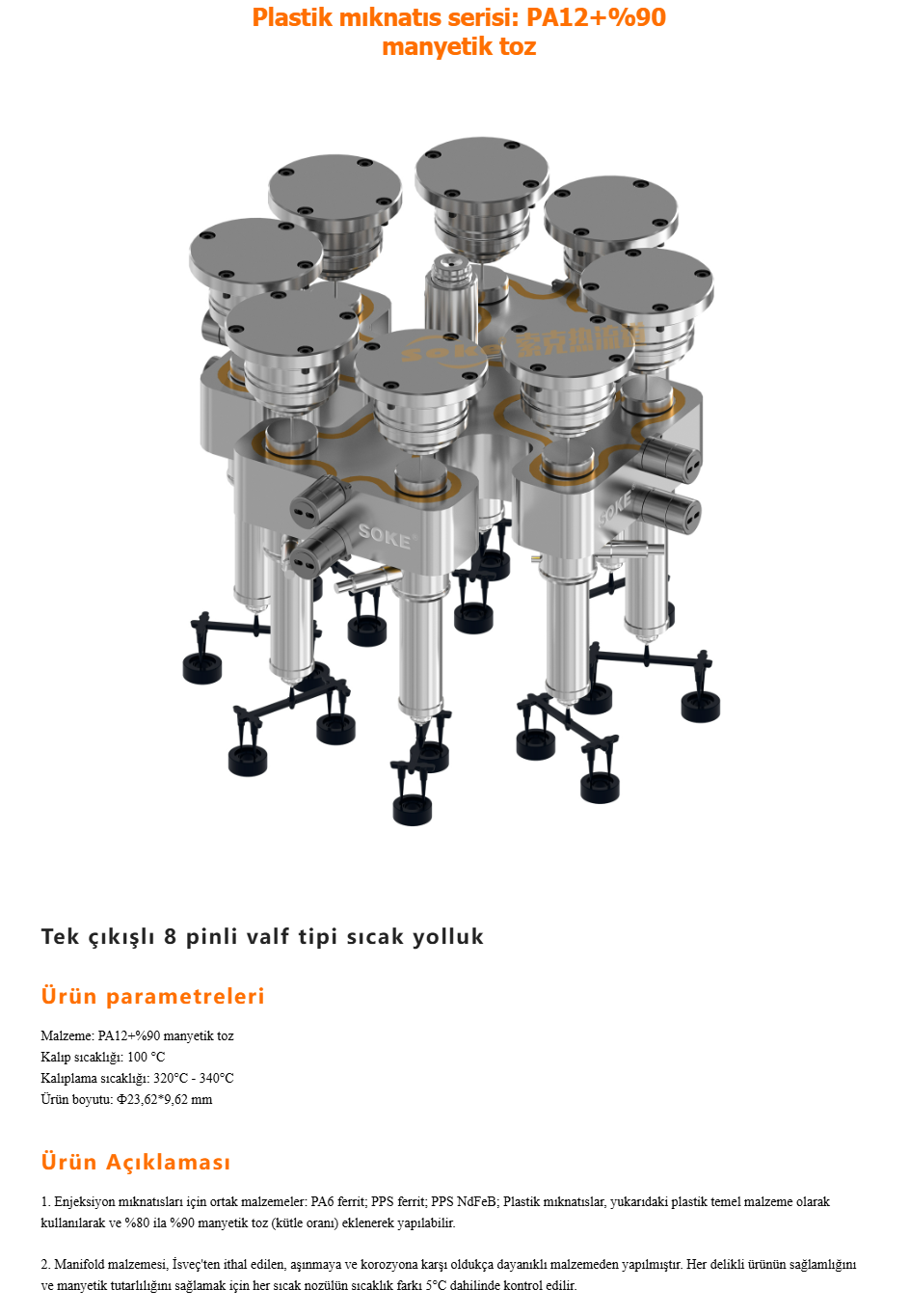 Müşteri taleplerini karşılamada mühendislik kadromuz ve çözümlerimizle PA6 + %90 manyetik tozlu, PPS %65 Fe karışımlı hammaddeler için sıcak yolluk üretimleri gerçekleştiriyoruz.